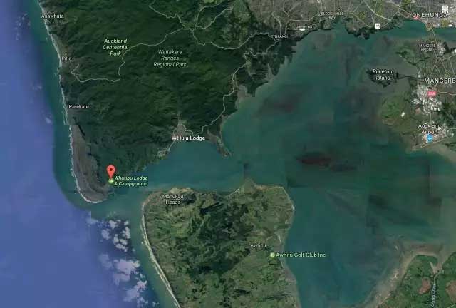 今天的目的地是 Whatipu Taniwha 们的开会之所,Taniwha 是毛利传说中的“龙”,每个水域都有一只 Taniwha 守护 ,毛利人和欧洲人最早登陆新西兰的地点之一。它的具体位置就在怀塔克里森林的西南角,塔斯曼海 Tasaman Sea 和曼努考港 Manukau Harbour 入海口之间形成的夹角地带。今晚的野外露营地就在 Whatipu Campground。